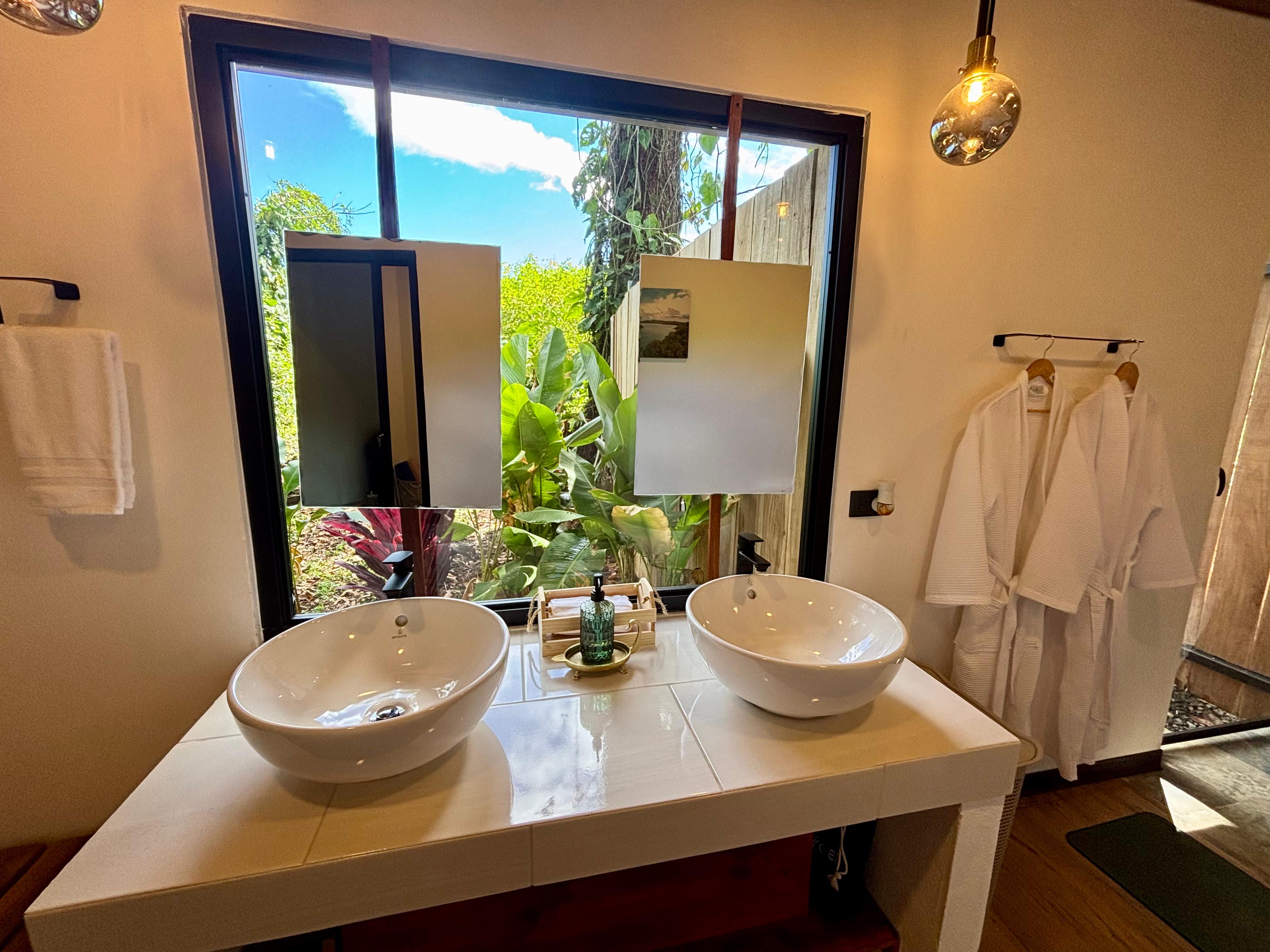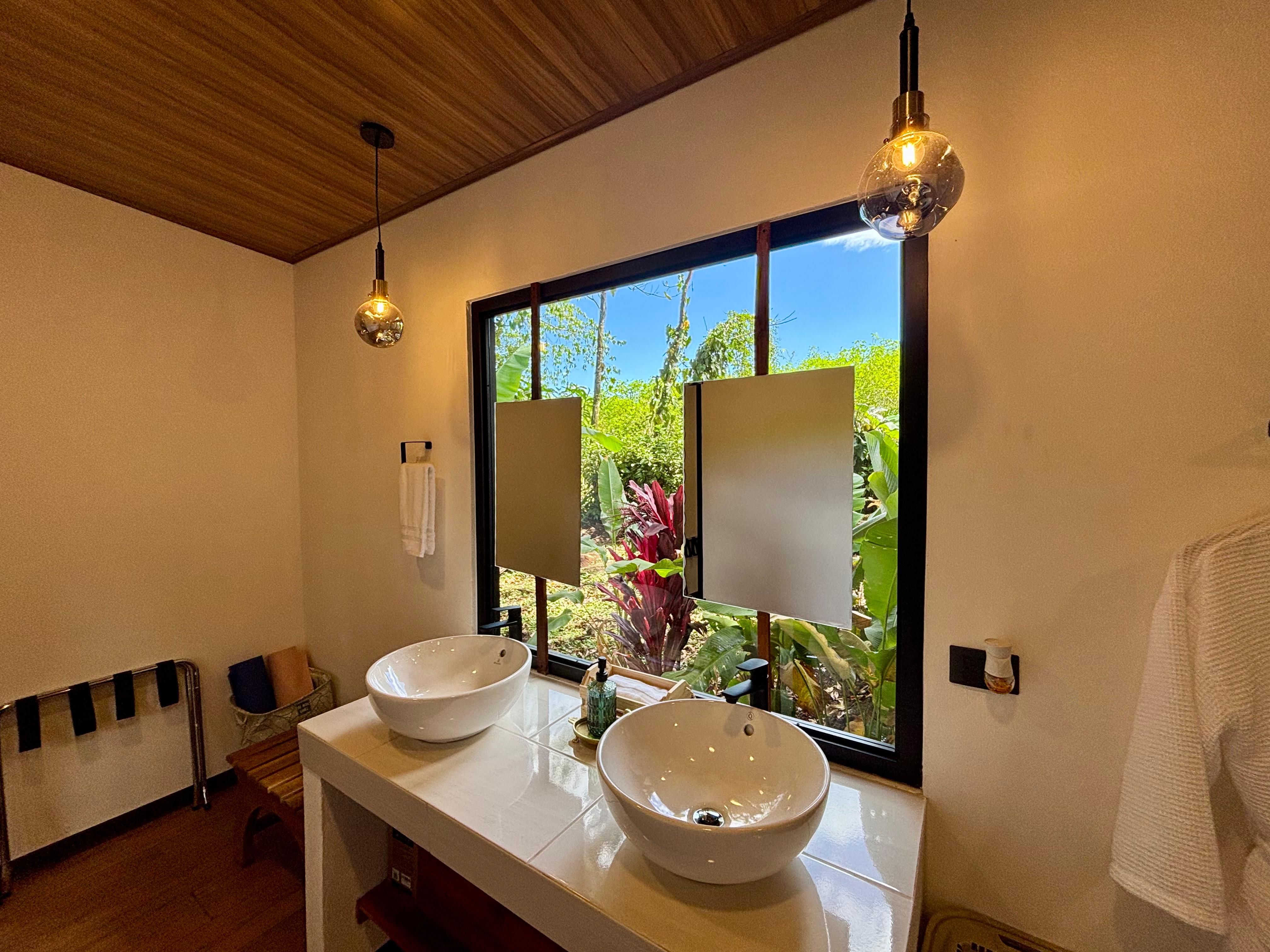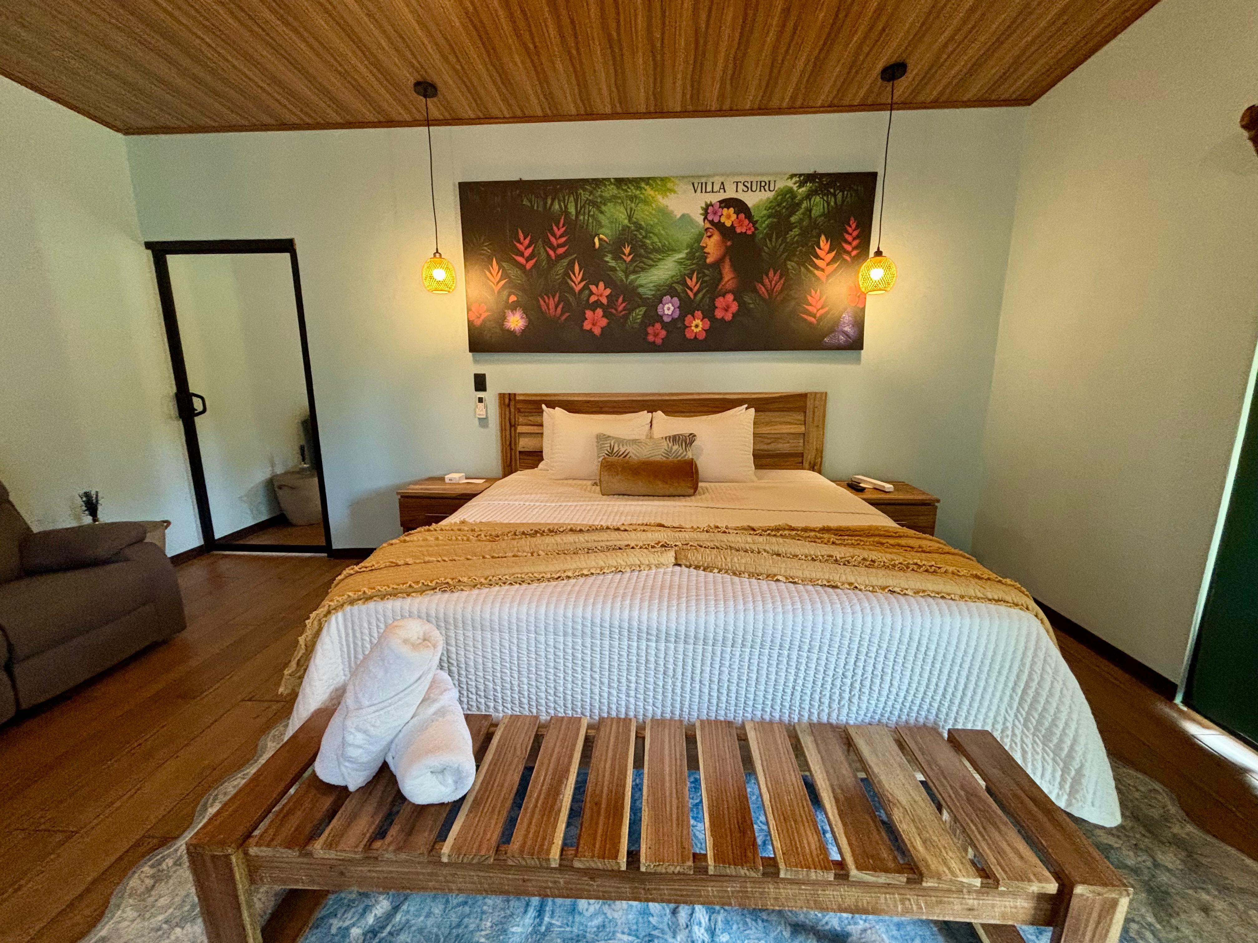 Nestled in the heart of the rainforest near the foot of the Arenal Volcano, enjoy a private sanctuary composed of two private luxury casitas, each with its own king-sized bed, private jacuzzi, modern bathroom, and hidden outdoor shower.